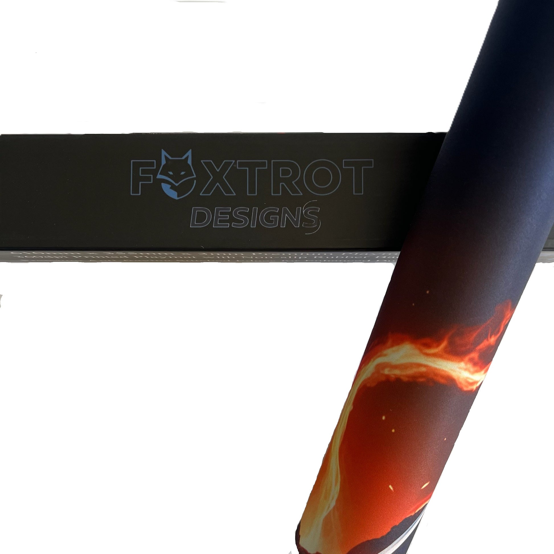 24"x14" premium playmat. 3mm thick. Non-slip rubber backing and anti-fray edge stitching.
